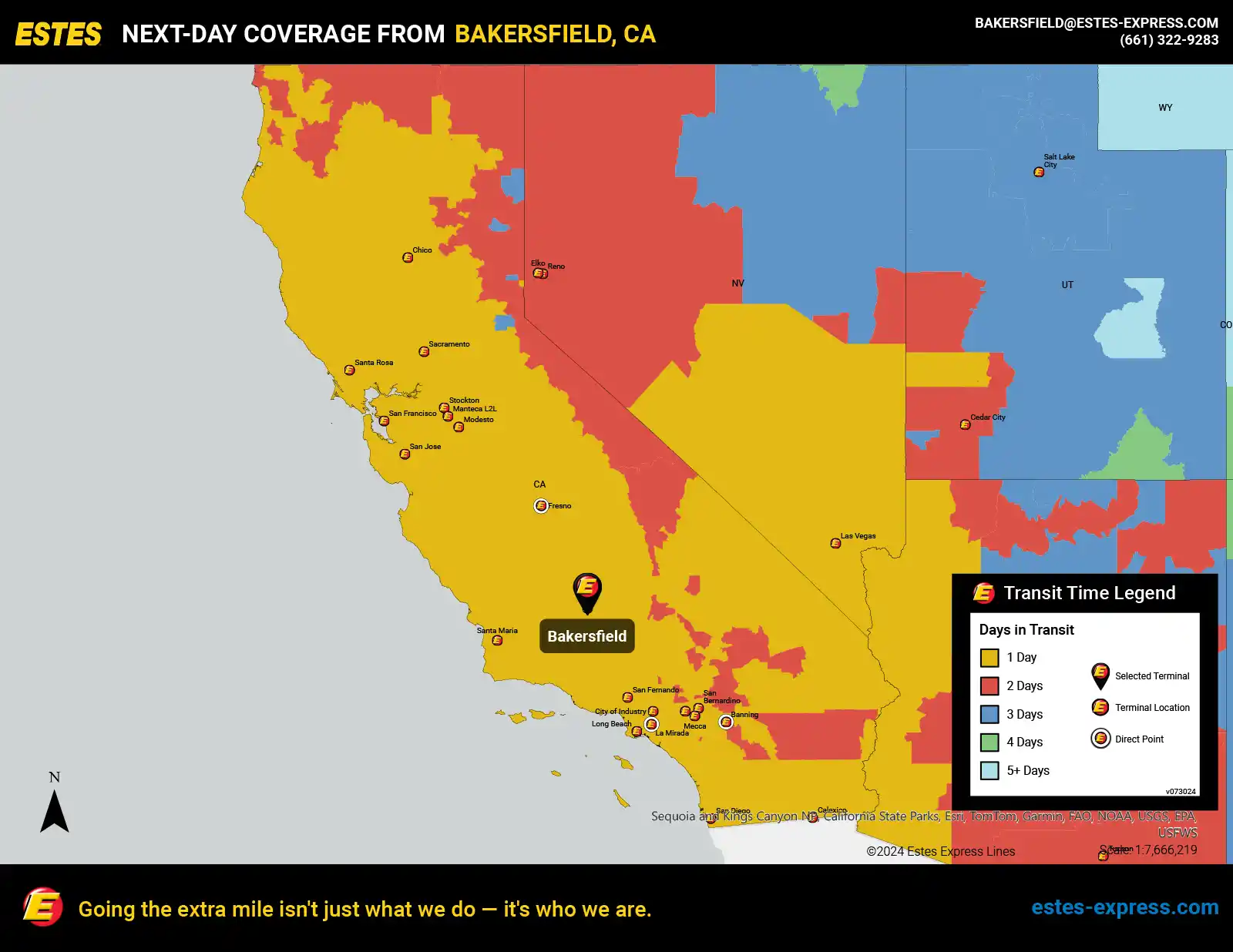 Contact us today for a rate quote or information, and we’ll show you why Bakersfield trusts its freight to Estes.