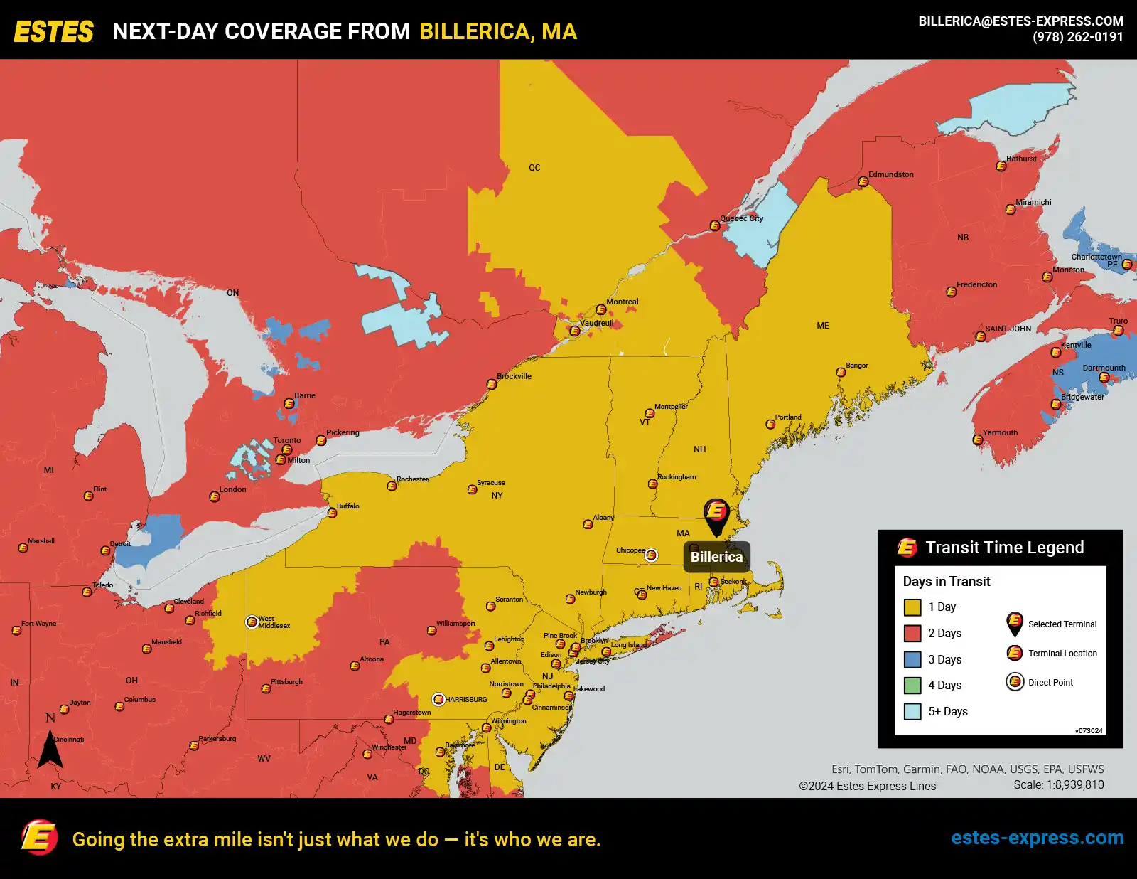 Need reliable LTL freight shipping? Estes offers next-day LTL from the Cambridge-Lowell-Nashua area to Boston, New York City, Philadelphia, Montreal, Baltimore, Buffalo, Syracuse, New Haven, Albany, and Wilmington DE.