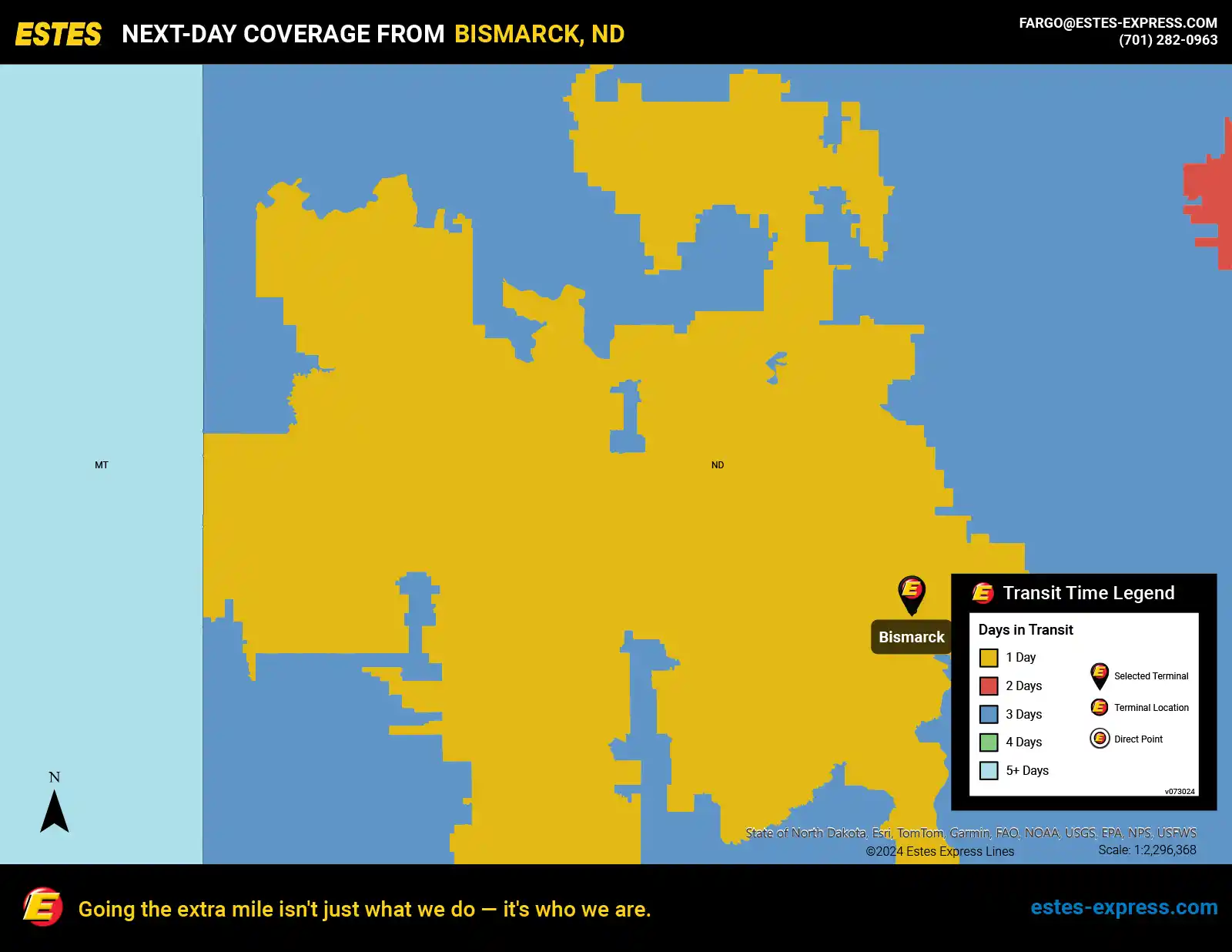 With nearly 7000 next-day lanes and 295+ terminals, Estes can transport Bismarck’s freight with ease.
