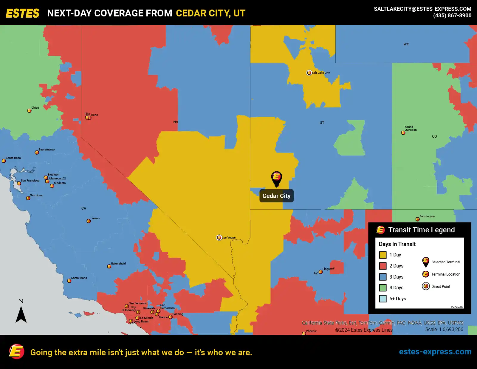 Estes offers next-day LTL freight shipping from the St. George-Cedar City area to Las Vegas and Salt Lake City.