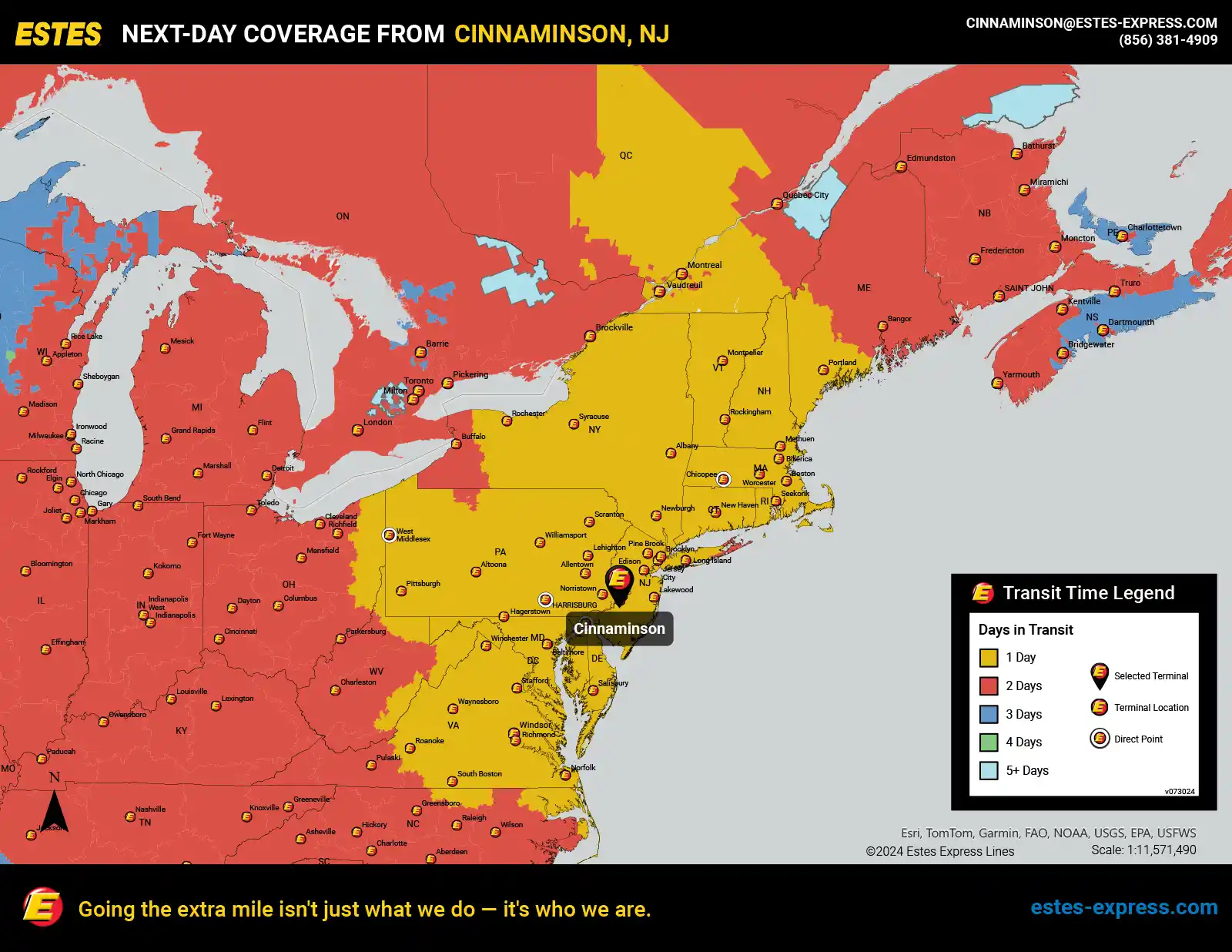 Need reliable LTL freight shipping? Estes offers next-day LTL from the Camden-Vineland area to NYC, Philadelphia, Boston, Montreal, DC, Baltimore, Pittsburgh, New Haven, Norfolk, Richmond, Syracuse, and Albany.