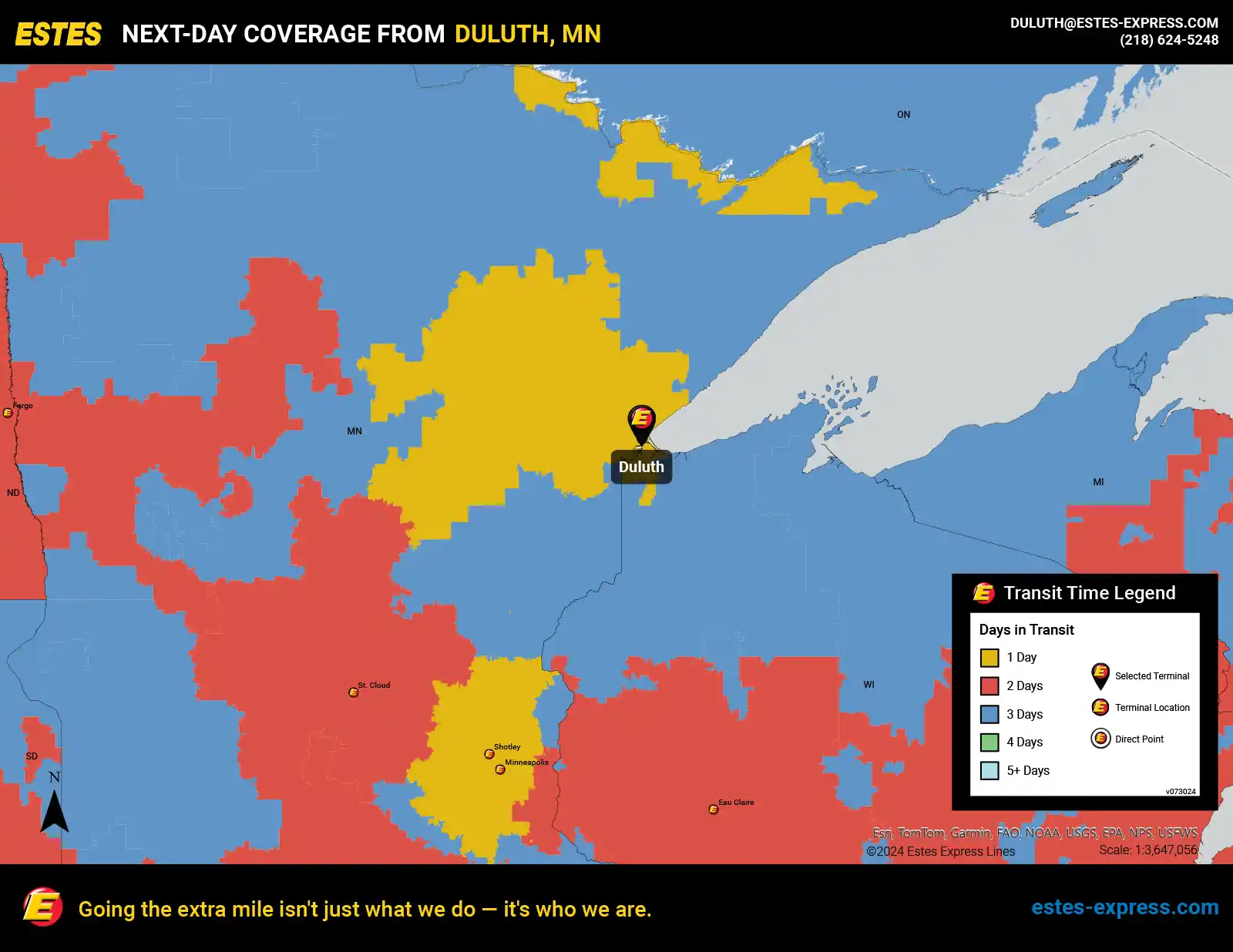 Estes offers next-day LTL freight shipping from Duluth to Minneapolis, St. Paul, and more.