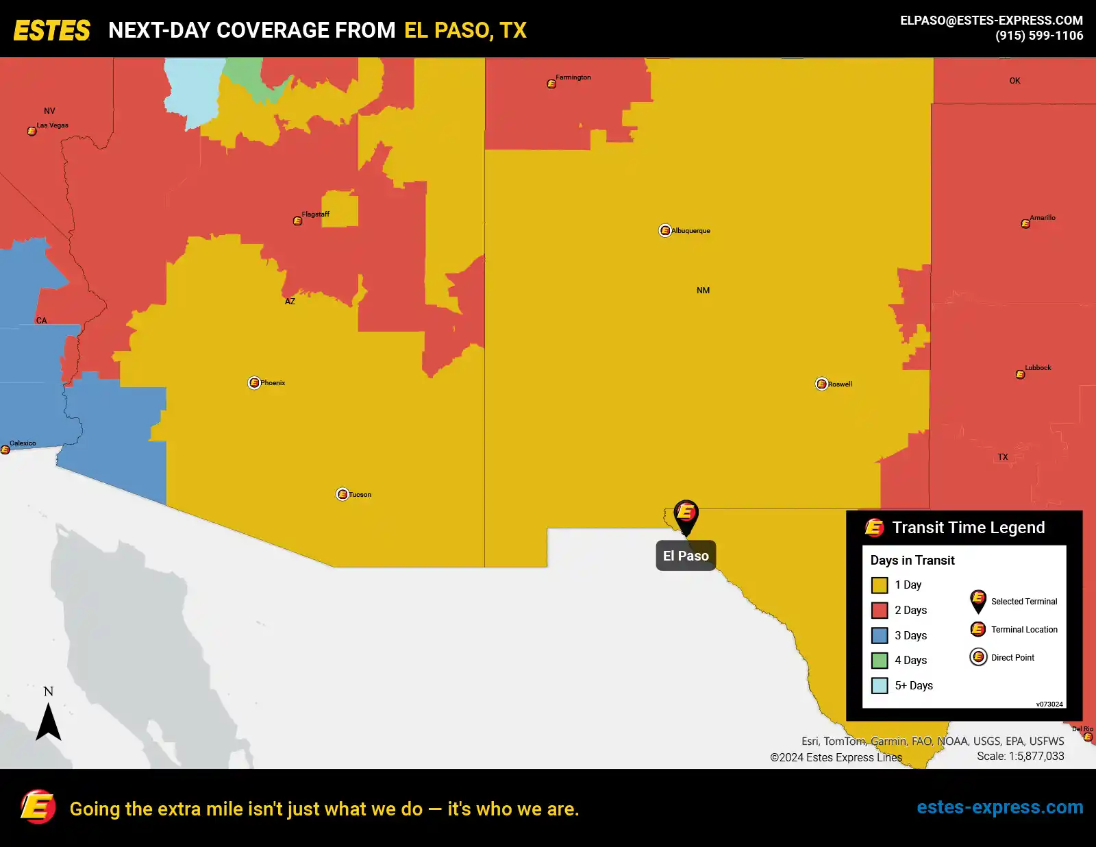 Estes offers next-day LTL freight shipping from El Paso to Phoenix, Albuquerque, Tucson—and more.