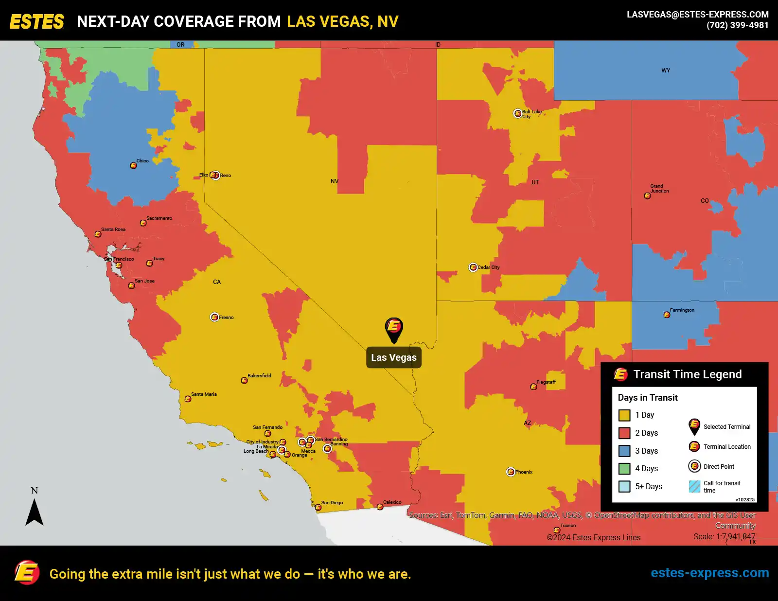Estes offers next-day LTL freight shipping from the Las Vegas-Henderson area to Los Angeles, Phoenix, San Diego, Salt Lake City, Fresno, Riverside, San Bernardino, Bakersfield, and more.