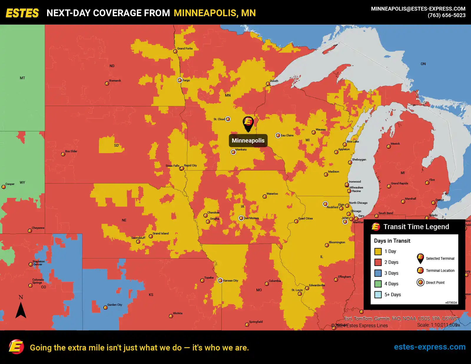 Contact us today to share your needs or get a rate quote, and we’ll show you why so many companies in Minneapolis-St. Paul trust their LTL freight shipping to Estes.