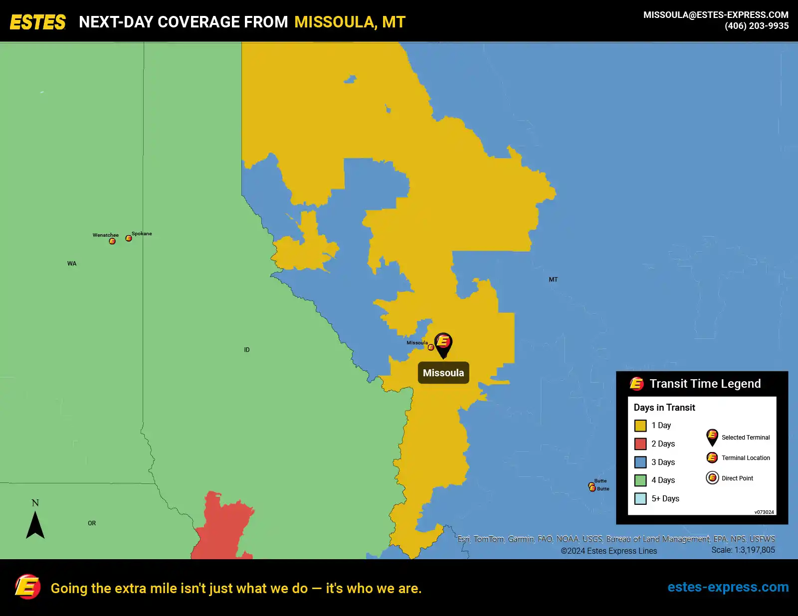With nearly 7000 next-day lanes and 280+ terminals, Estes can move Missoula’s LTL freight with ease.