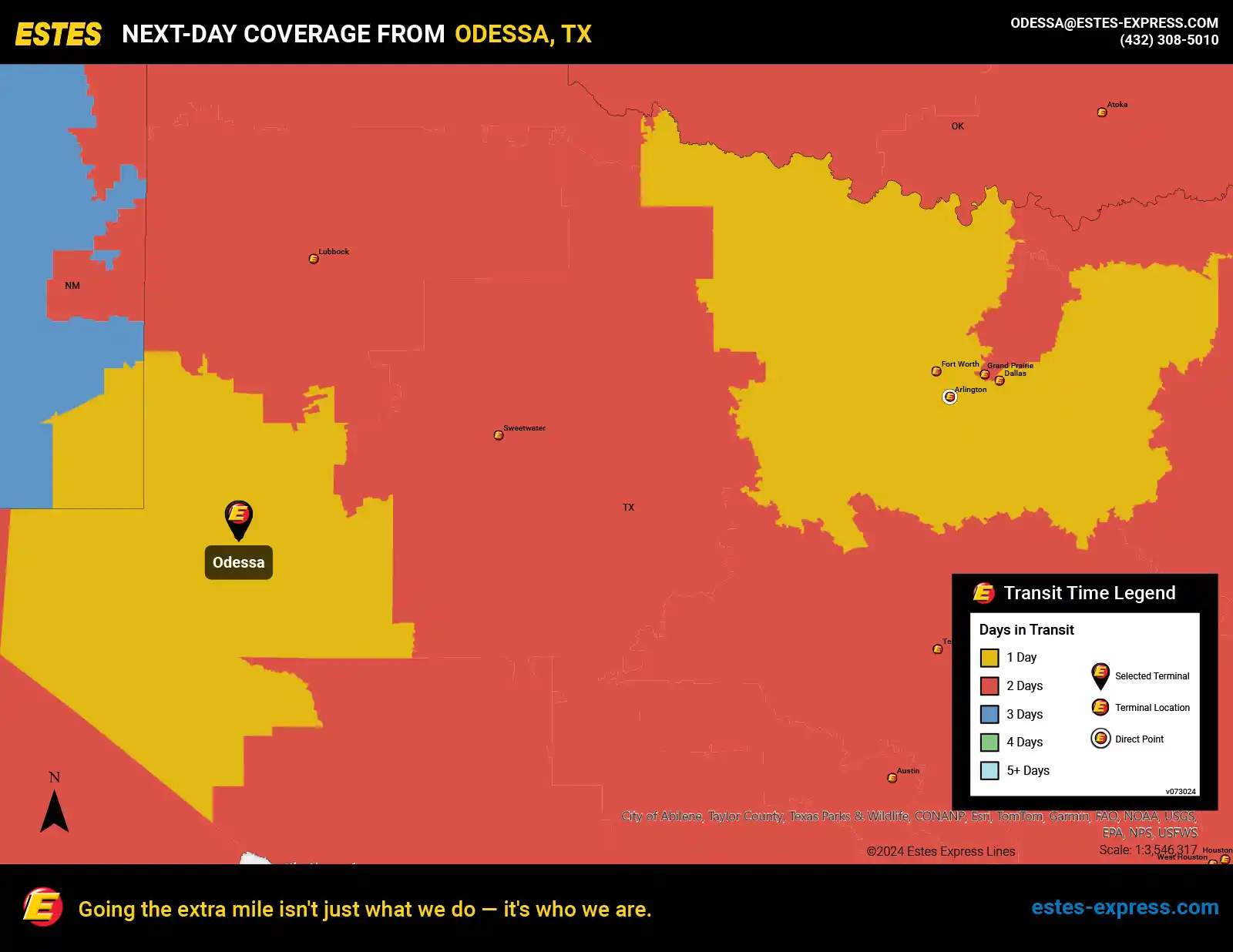 Estes offers next-day LTL freight shipping from the Odessa-Midland area to Dallas-Fort Worth and beyond.