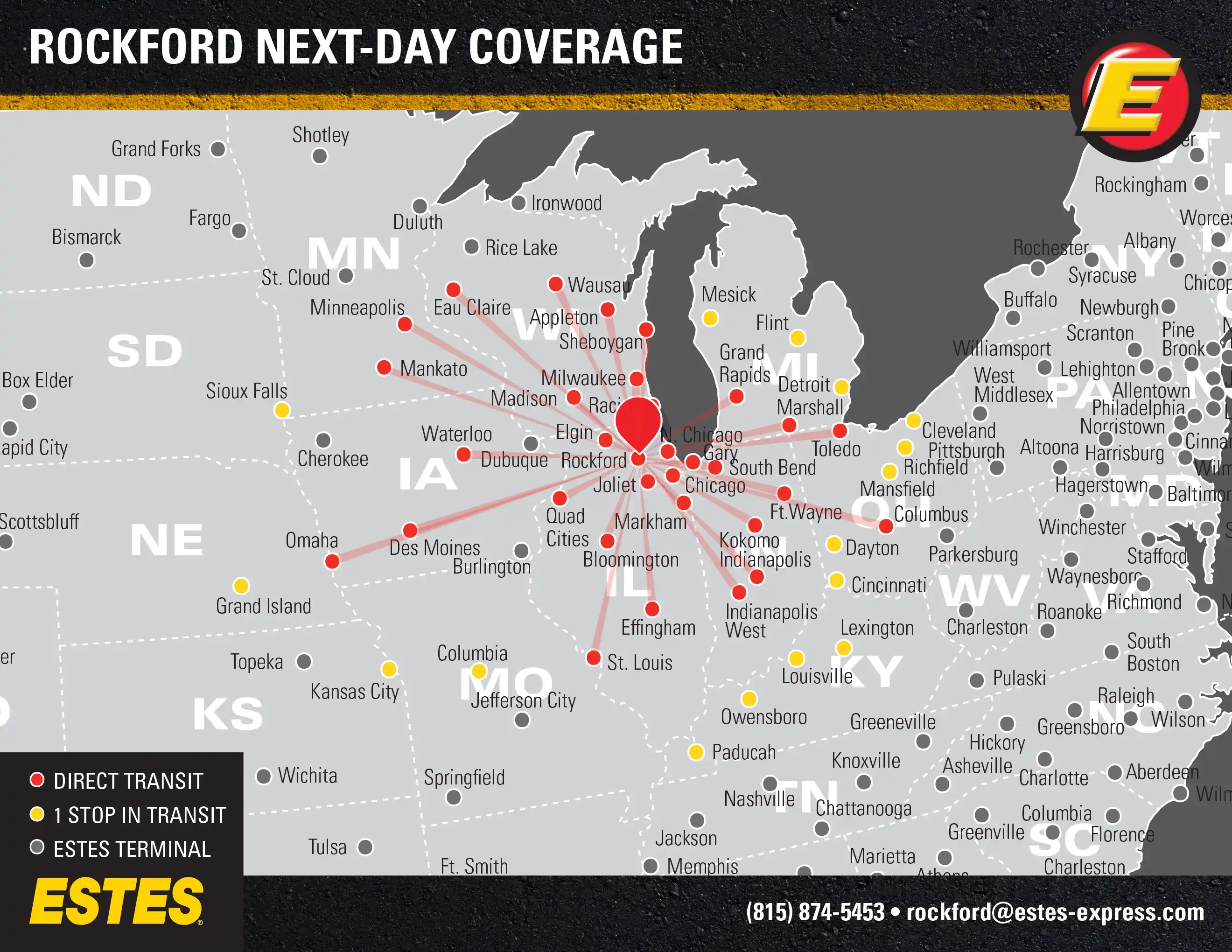 Contact us today to find out why businesses in Rockford, DeKalb, Janesville, and beyond count on us to get their LTL freight where it needs to go, when it needs to get there. From short-haul to long-haul, Estes does it all.