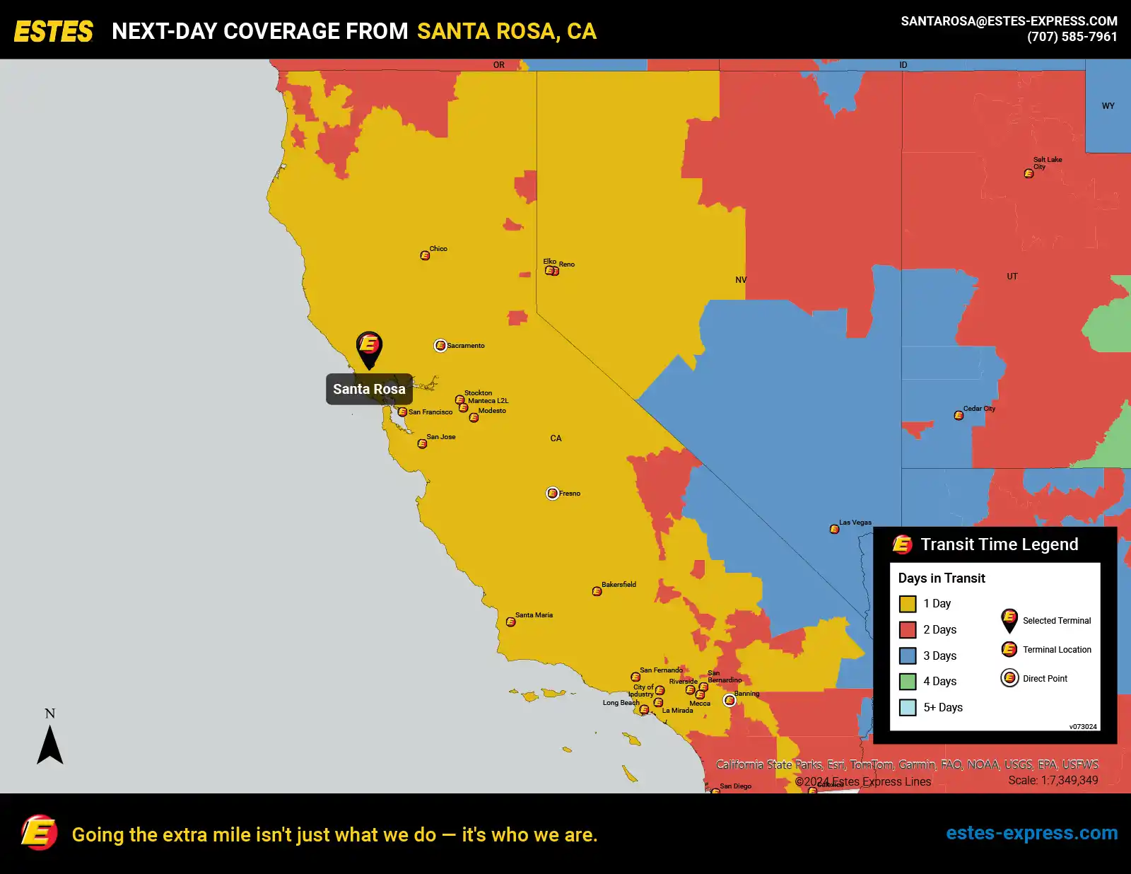 Estes offers next-day LTL freight shipping from Sonoma and Marin County—including Santa Rosa, San Rafael, Petaluma, and Novato—to destinations throughout the West.