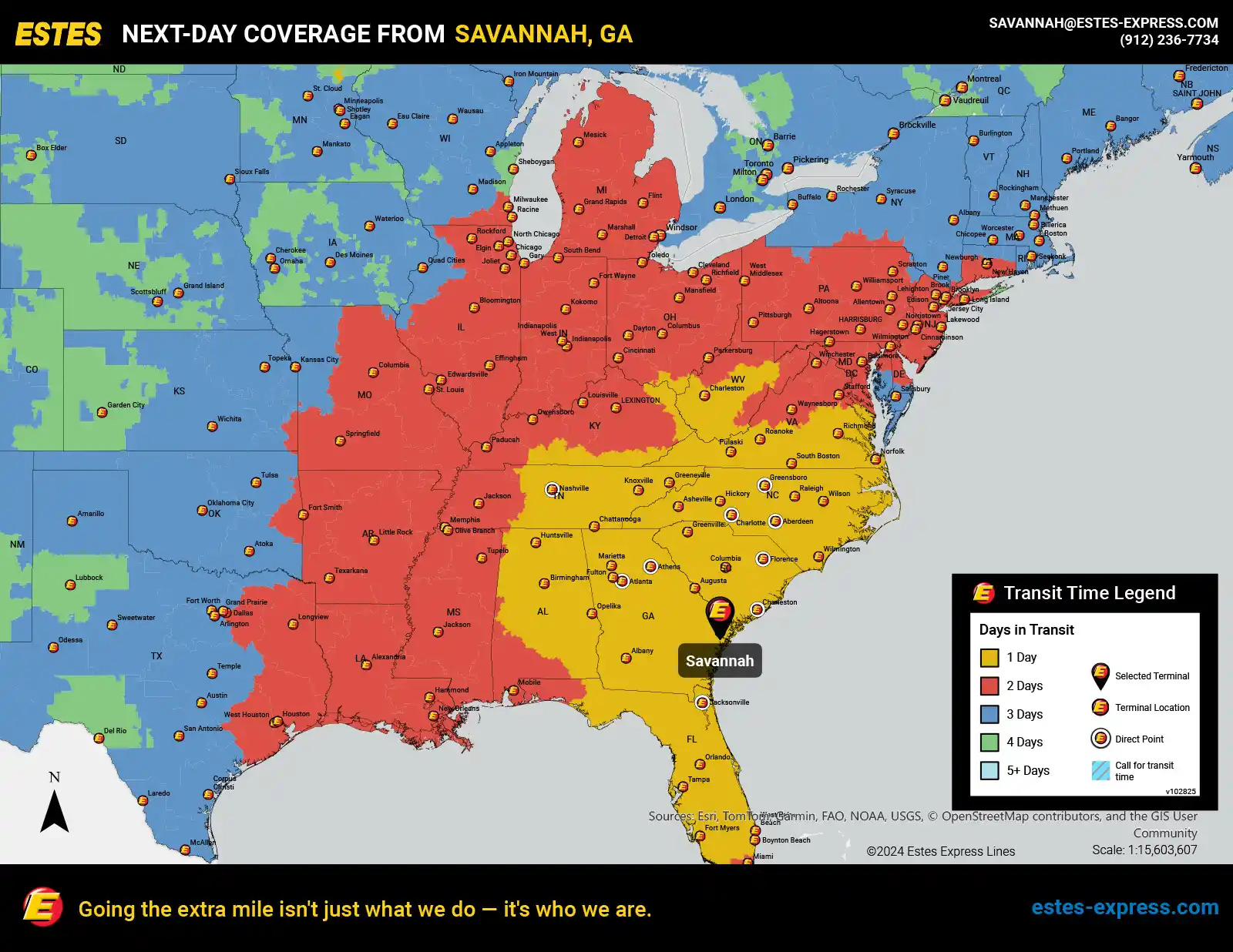 Contact us today to find out why Savannah counts on us to get their LTL freight where it needs to go, when it needs to get there. From short-haul to long-haul, Estes does it all.
